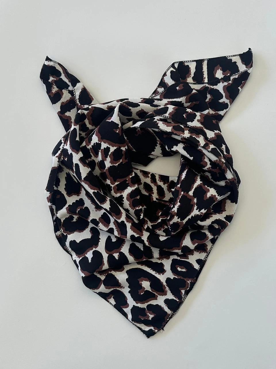 Pañuelo de gasa con estampado animal print, ideal para darle un toque trendy y sofisticado a cualquier look. Su textura liviana y suave lo hace súper versátil: podés usarlo al cuello, en el pelo, atado en la cartera o incluso como top. Un accesorio que nunca pasa de moda y eleva al instante tus outfits.
