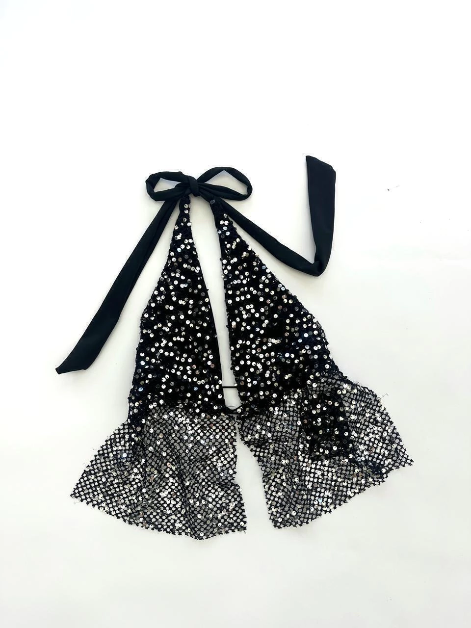 Top halter de lentejuelas con lazo para ajustar en el cuello y espalda. Incluye forro interno en la zona del busto. Brillo intenso y caída liviana que se adapta al movimiento. Perfecto para la noche, fiestas o para elevar un look simple con un toque de luz. Talle único.
